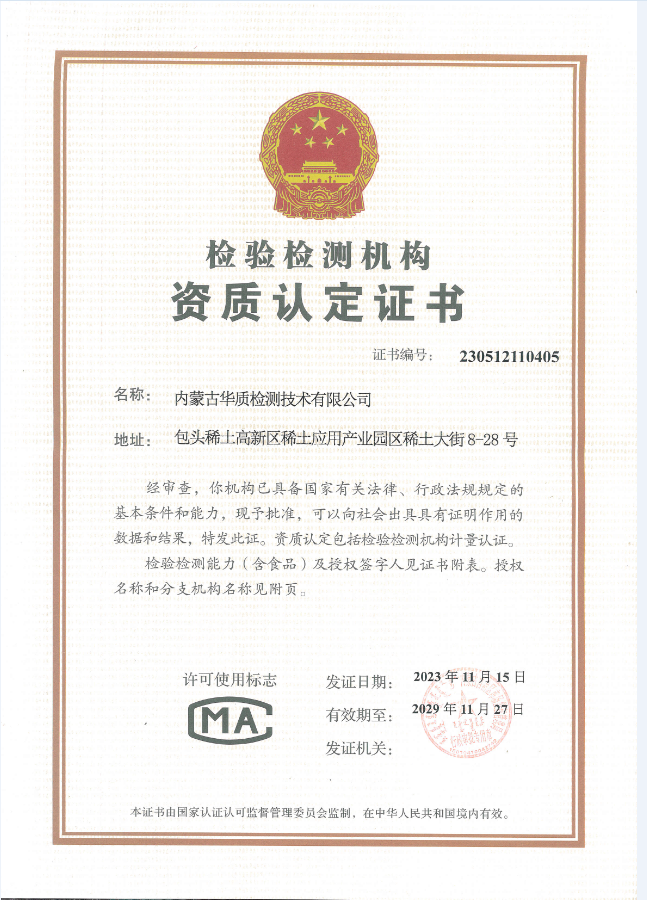 关于我们 内蒙古华质检测技术有限公司成立于2014年,公司拥有经验丰富、技术精湛、专业高效的技术团队,始终遵循“科学、公正、精准、高效”的经营理念和“专业、专注、诚信、优质”的服务理念,打造专业化、规范化、标准化的权威性第三方检测和评价服务机构。