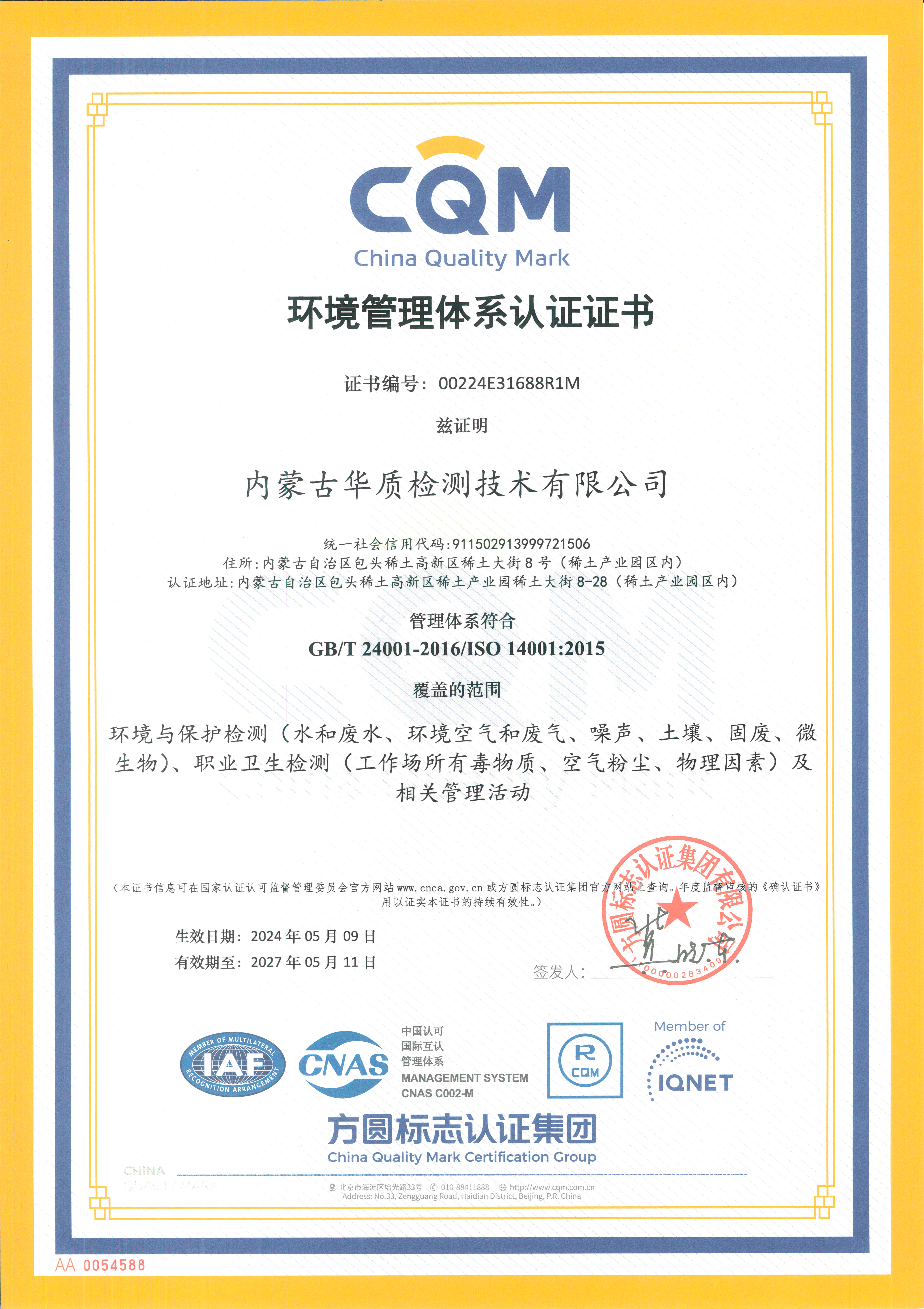 ● 环境管理体系认证监测